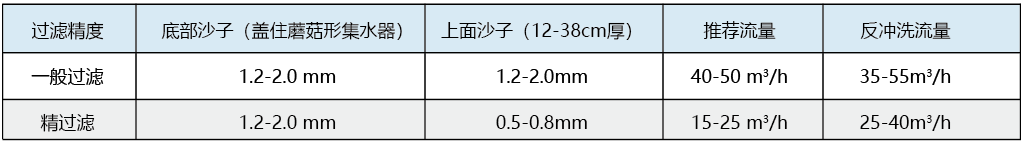 过滤介质和流量:TPY可以使用常见的各种过滤介质,但主要是使用石英沙,根据过滤的要求,推荐两中精度的石英沙: