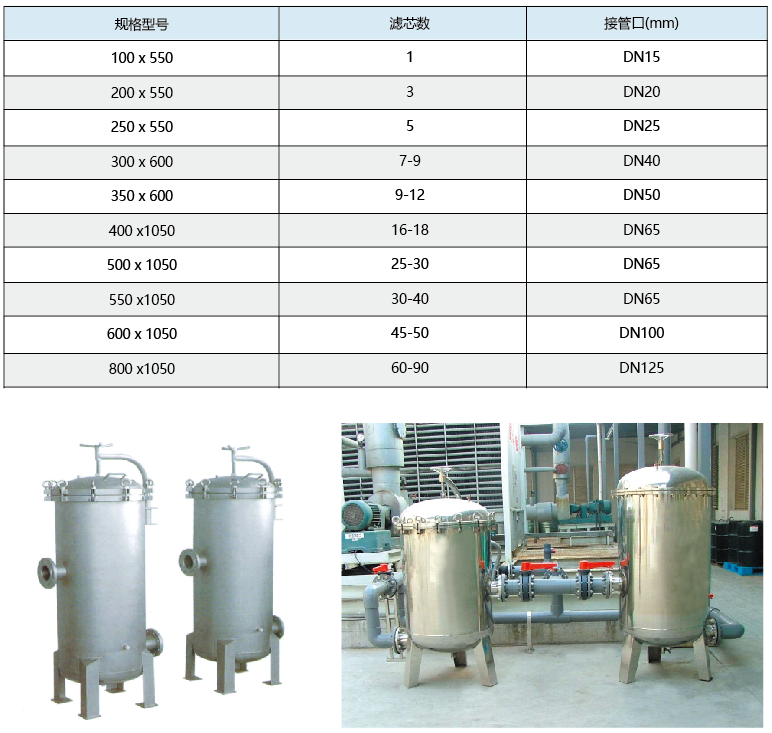 概述 精密过滤器(又称作保安过滤器),简体外壳一般采用不锈钢材质制造,内部采用PP熔喷、线烧、折叠、钛滤芯、活性炭滤芯等管状滤芯作为过滤元件,根据不同的过滤介质及设计工艺选择不同的过滤元件,以达到出水水质的要求。机体也可选用快装式,以方便快捷的更换滤芯及清洗。该设备广泛应用于制药、化工、食品、饮料、水处理、酿造、石油、印染、环保等行业,是各类液体过滤、澄清、提纯处理的理想设备。