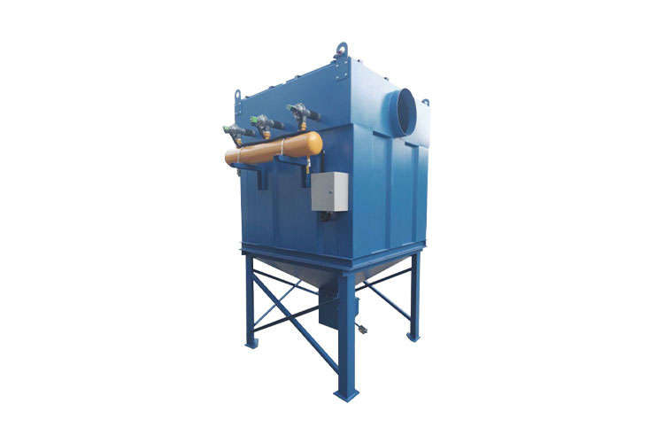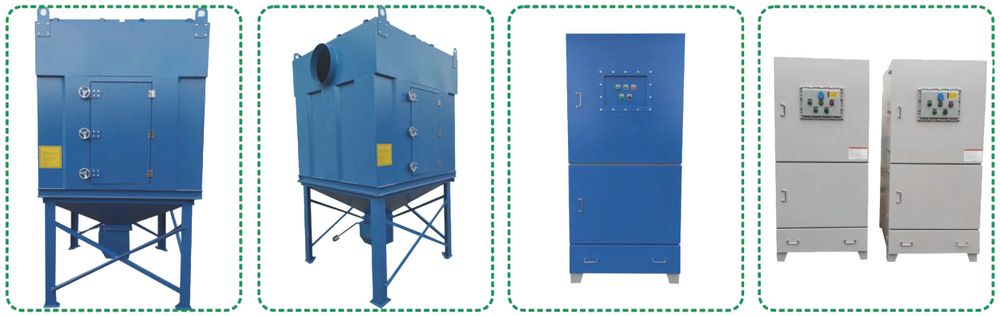 滤筒式除尘器为负压运行,含尘气流从位于除尘器上部的进风口下行进入箱体,箱体内的导流板迫使气流向下穿过滤筒,由于气流断面突然扩大,气流中一部分颗粒粗大的尘粒在重力和惯性力作用下沉降下来,粒度细、密度小的尘粒进入过滤室后,通过布朗扩散和筛滤等综合效应使粉尘沉积在滤料表面,净化后的空气透过滤料进入清洁室从出风口排出,当粉尘在滤料表面上越积越多,阻力达到设定值时,脉冲阀打开,压缩空气直接喷入滤筒中心,对滤筒进行顺序脉冲清灰,抖落积尘,使其恢复低阻运行,掉入灰斗内收集的粉尘通过卸灰阀连续排出。维修时,只需要人工将检修盖上的手轮旋下即可轻松取出滤筒。