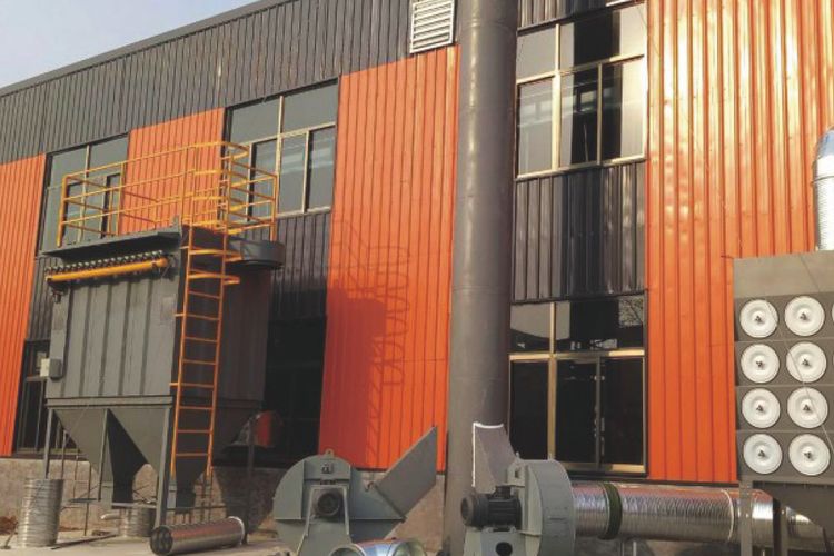 布袋式除尘器是一种干式滤尘装置。袋式除尘器结构主要由上部箱体、中部箱体、下部箱体(灰斗)、清灰系统和排灰机构等部分组成。它适用于集细小、干燥、非纤维性粉尘。滤袋采用纺织的滤布或非纺织的毡制成,利用纤维织物的过滤作用对含尘气体进行过滤,当含尘气体进入袋式除尘器后,颗粒大、比重大的粉尘,由于重力的作用沉降下来入灰斗。含有较细小粉尘的气体在通过滤料时,粉尘被阻留,使气体得到净化。